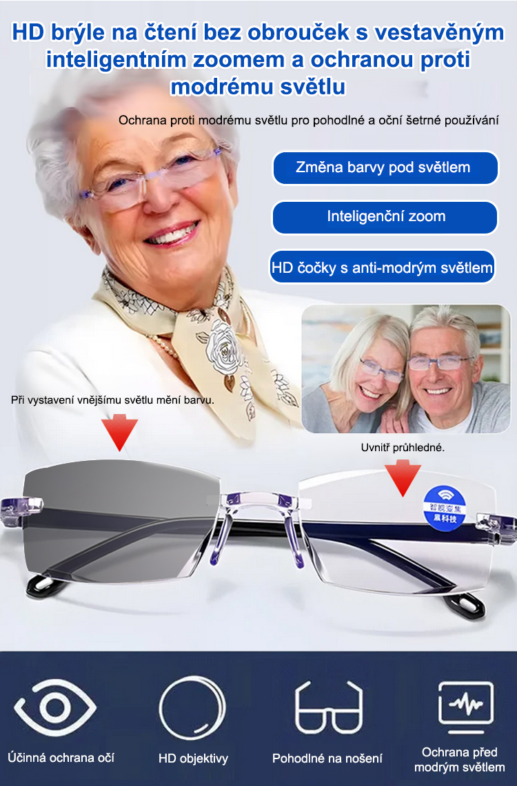 Automatické nastavení od 100 do 700 dioptrií, bez možnosti výběru stupňů, elegantní design pro muže i ženy, okamžitě vás omládne o 20 let!