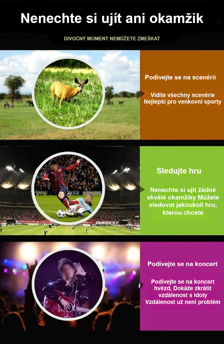 Lze jej připojit k mobilnímu telefonu, má extrémně rychlý zoom a pozorovací vzdálenost 8 000 metrů. Je velmi vhodný pro prohlídky památek, sledování koncertů, her atd.