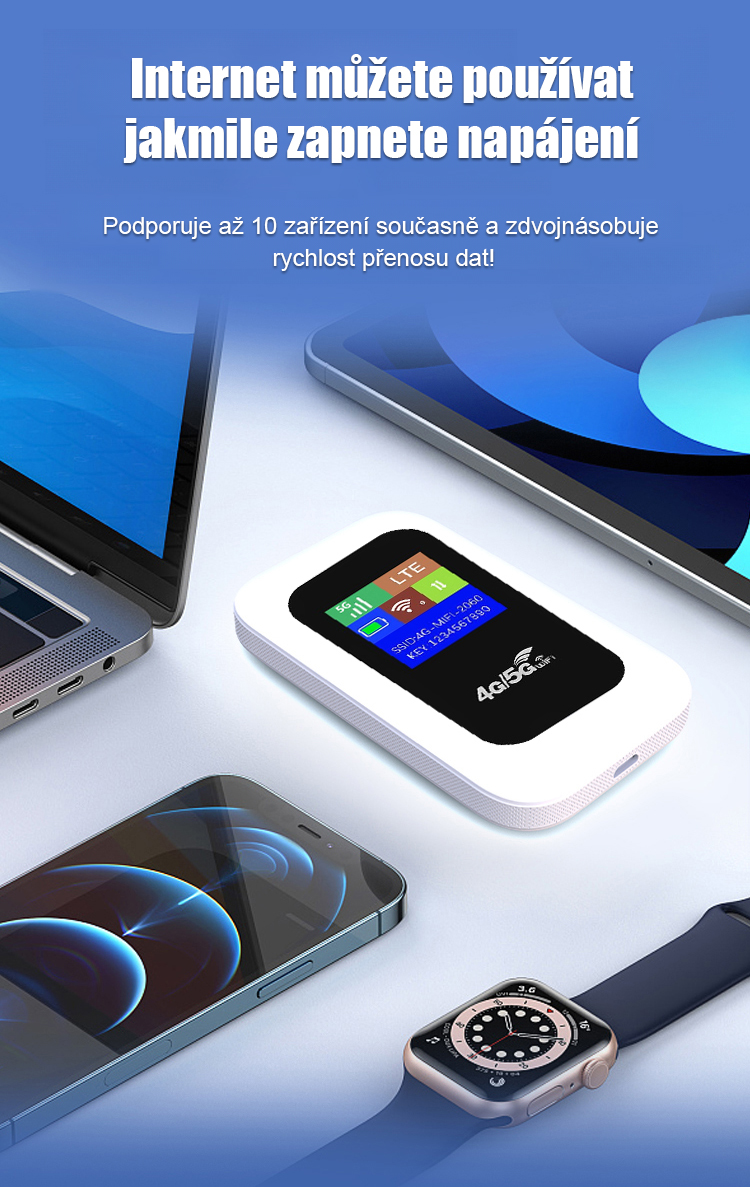 Bez smlouvy ani měsíčního poplatku! Vysokorychlostní streamování, kompatibilní až s 10 zařízeními současně, a nepřetržitá rychlost sítě i v odlehlých horských oblastech nebo sklepech.