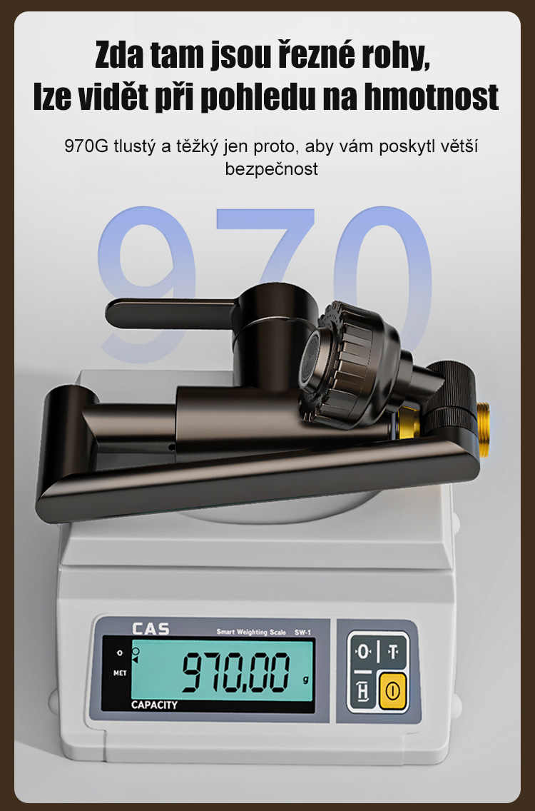 Mechanická otočná baterie s úhlem 1080°. Nepropustná, odolná proti korozi a s desetiletou životností.